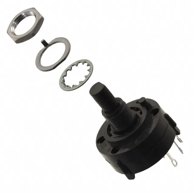 Es un interruptor rotativo de 3 posiciones fabricado por E-Switch, diseñado para aplicaciones electrónicas y de control.