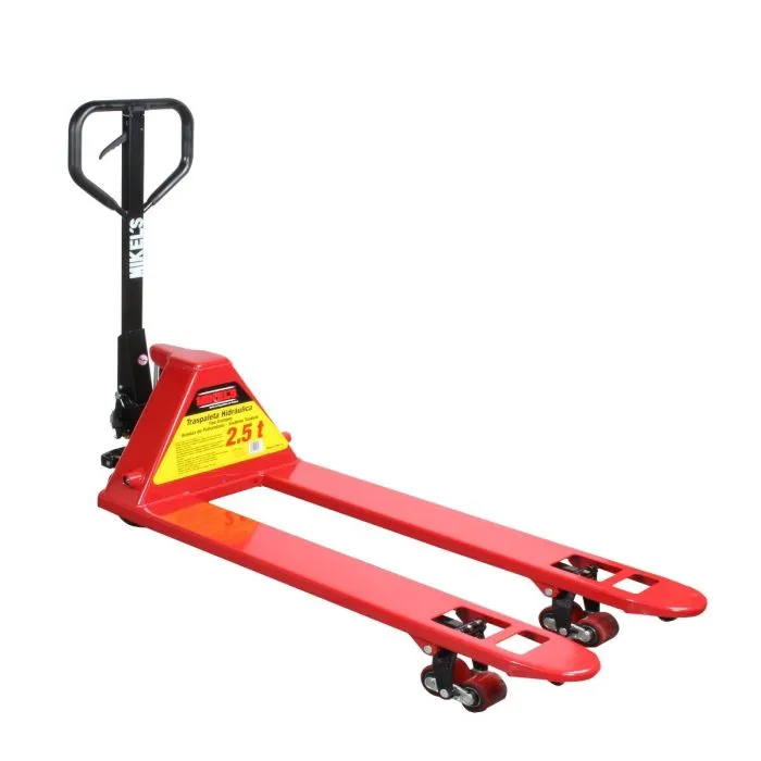 Patin hidráulico traspaleta con ruedas de poliuretano sistema tándem tipo Europeo 2.5 ton