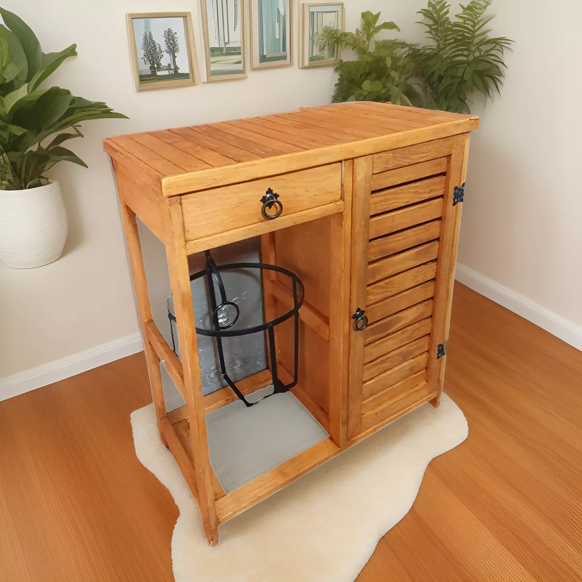 Mueble Auxiliar de Cocina Rústico con Canastillas de Madera Estilo Tabasco